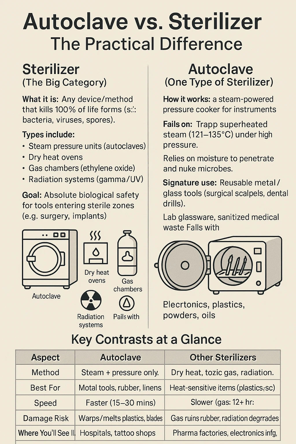 Autoklaavi vs. sterilointilaite: Käytännön ero