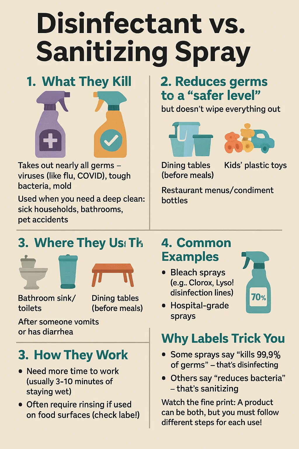 Tässä on todellisen maailman ero desinfiointisuihkeet ja desinfiointisuihkeet: